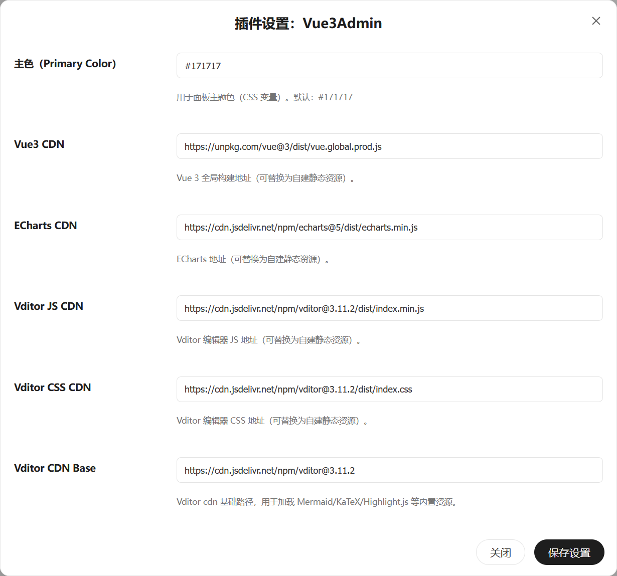 path)、文章 ID(cid,仅文章页)、访问设备(由 UA 解析)、访问时间(服务端时间)。/Vue3Admin/track.php(插件启用后会自动部署)。CF-Connecting-IP / X-Forwarded-For / X-Real-IP 等请求头。在插件设置中可配置: